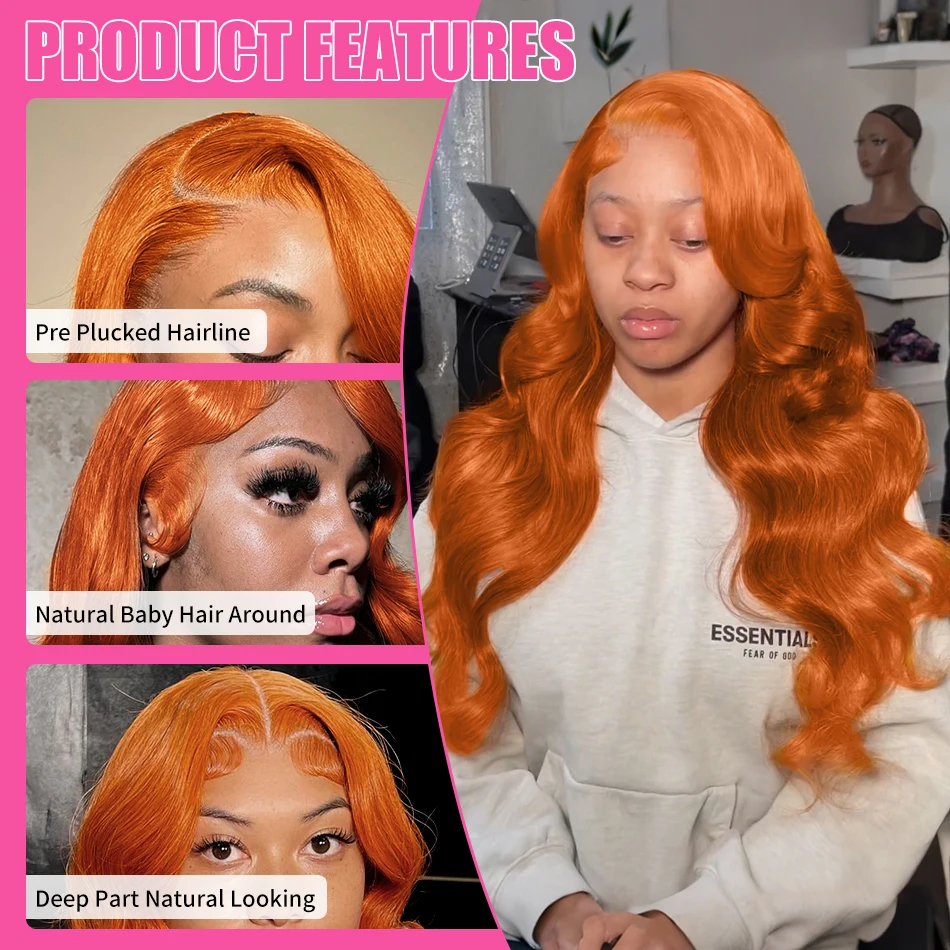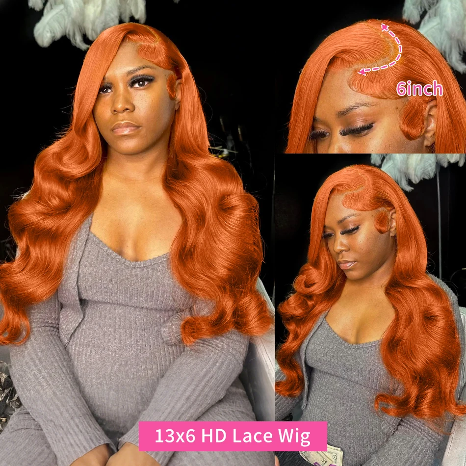 30 32 Inch Orange Ginger Body Wave Human Hair Wigs 13x6 Hd Lace Frontal Wig Brazilian